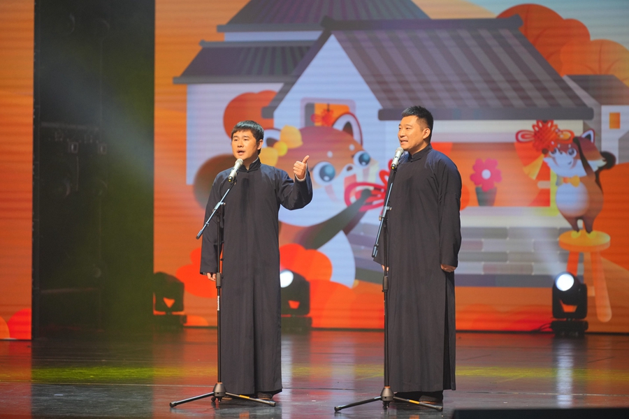 德云社的楊霄鐸、肖霄雨為觀眾帶來(lái)相聲表演《節(jié)日游戲》。