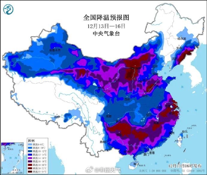 16日,受寒潮影響,陰天有小雨,北風(fēng)加大,氣溫持續(xù)下降,至20時(shí)氣溫下降至8~10℃;