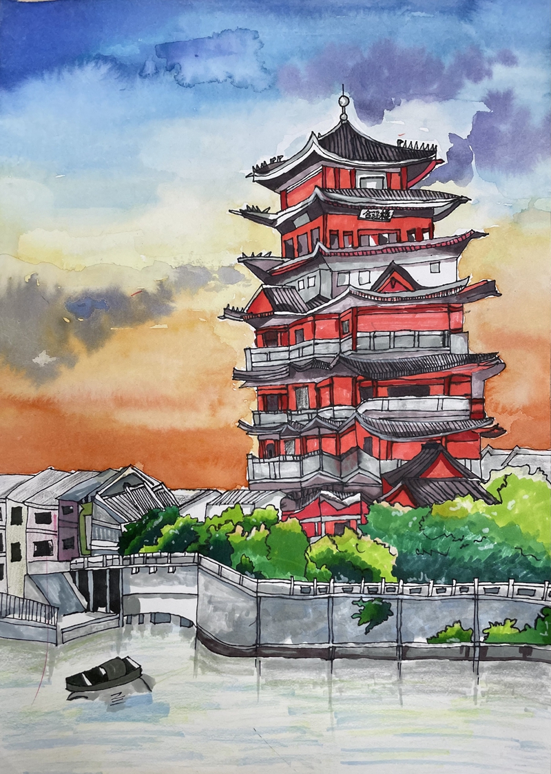 《合江樓》(繪畫兒童組一等獎(jiǎng)) 李悅安 作