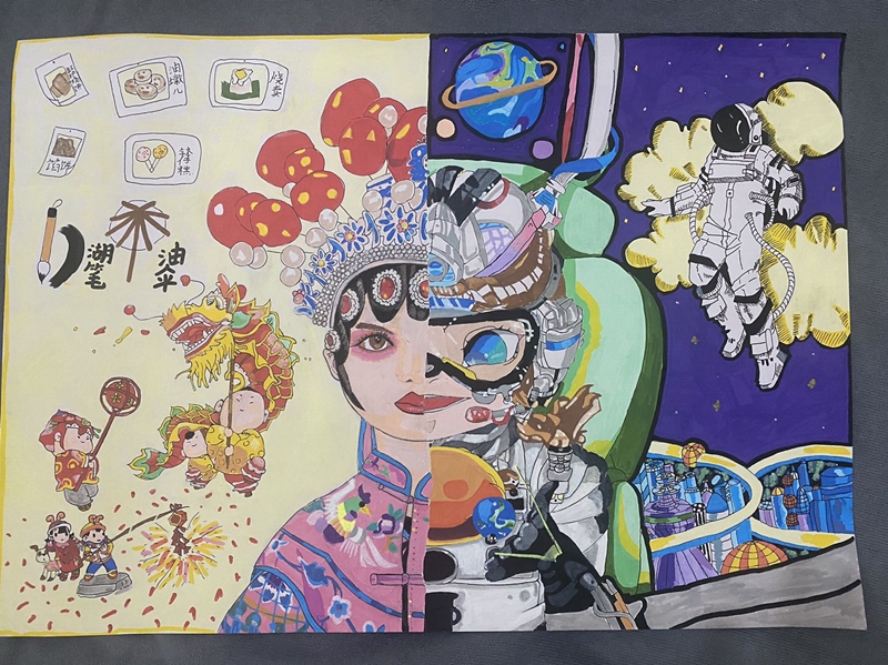 《傳承經(jīng)典,共筑未來》(繪畫兒童組二等獎(jiǎng)) 翟夢(mèng)棋 作