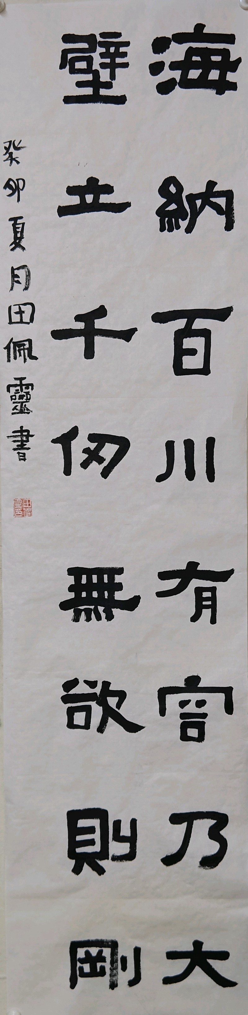 《海納壁立聯(lián)》 (書法兒童組二等獎(jiǎng)) 田佩靈 作