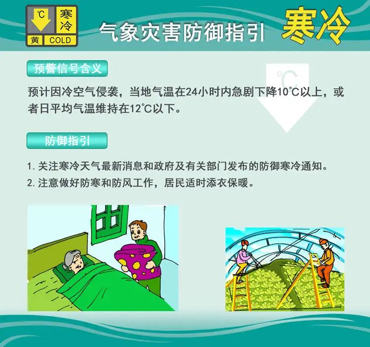 市氣象部門提醒,氣溫急降,請(qǐng)注意防寒保暖;海陸風(fēng)力加大,雨天路面濕滑,需注意對(duì)海陸交通帶來的不利影響;低溫天氣對(duì)農(nóng)業(yè)、畜牧業(yè)、養(yǎng)殖業(yè)等有較大影響,需提前做好防寒工作。