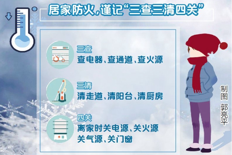 惠州市消防救援支隊(duì)有關(guān)負(fù)責(zé)人提醒,注意做好居家防火,做到“三查三清四關(guān)”,即查電器、通道、火源,清走道、陽臺、廚房,離家時(shí)關(guān)電源、火源、氣源、門窗。特別要注意的是,冬季取暖要注意安全用火用電,切勿在電暖器上烘烤衣物,電暖器與可燃物要保持安全距離,出門時(shí)關(guān)閉電源開關(guān)。同時(shí),應(yīng)購買合格的電熱毯,電熱毯嚴(yán)禁長時(shí)間通電,嚴(yán)禁在電熱毯上覆蓋過厚的被蓋,嚴(yán)禁反復(fù)折疊電熱毯。“液化氣灶平時(shí)要注意保養(yǎng),在使用燃?xì)鈺r(shí)要注意經(jīng)常檢查爐灶、閥門、管道等是否存在泄漏的情況,一旦發(fā)生破損漏氣要及時(shí)維修。”