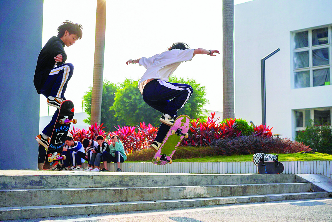 上圖:惠州市財經(jīng)職校滑板社活動。