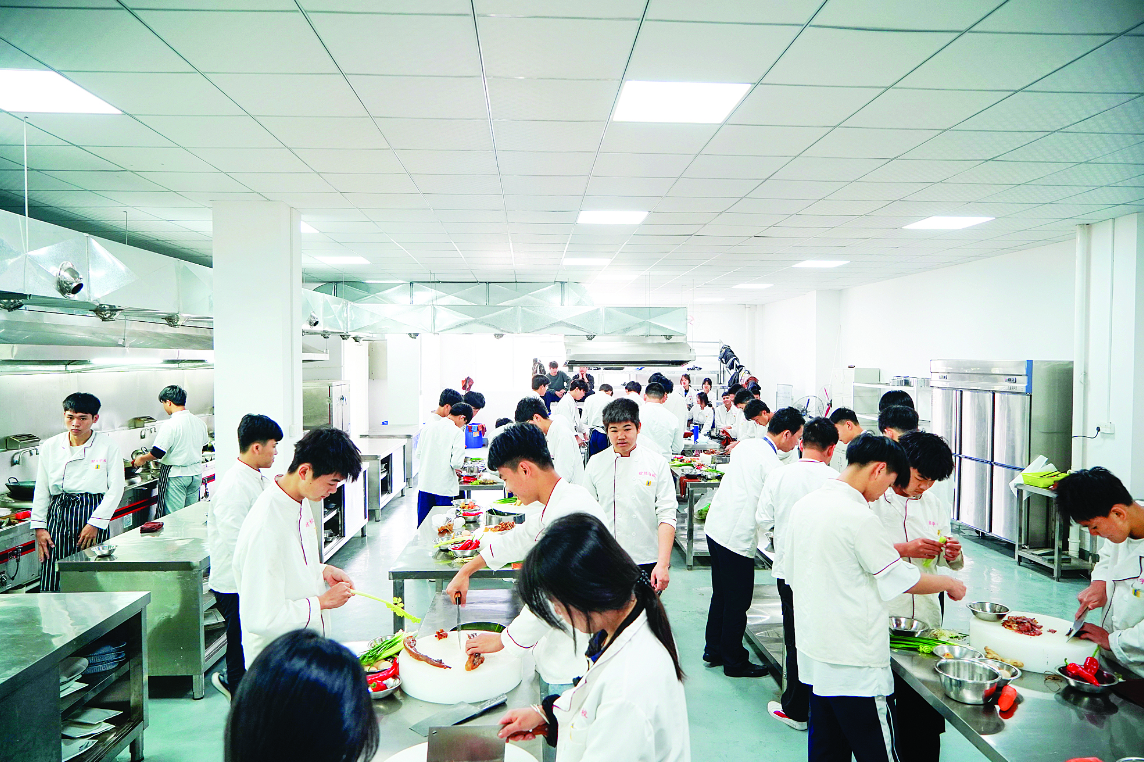 下圖:惠州市財經(jīng)職校烹飪課堂。