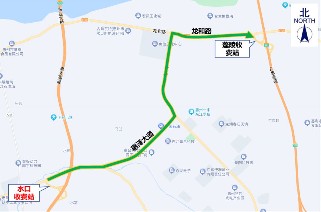 5.水口收費(fèi)站:交通管制時(shí)間內(nèi),原計(jì)劃從水口收費(fèi)站上高速的貨車,可通過惠澤大道→龍和路(省道S120)→蓬陵收費(fèi)站上高速。