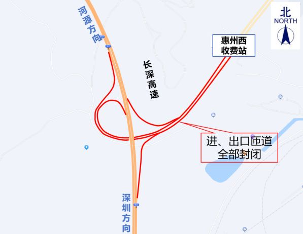 G25長深高速公路惠州段(惠河高速公路)惠州西收費(fèi)站進(jìn)、出口匝道全部封閉,禁止車輛通行。