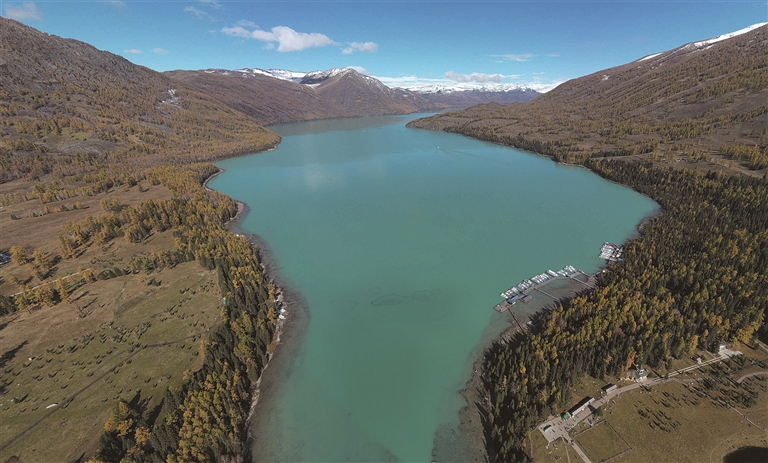 喀納斯湖安靜地臥在群山之中。