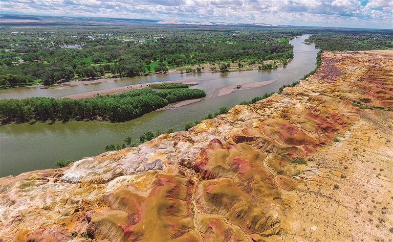 額爾齊斯河的猛烈沖擊,當?shù)氐目耧L侵蝕,形成了五彩灘懸崖式的雅丹地貌。因河岸巖層抗風化能力強弱不一,輪廓參差不齊,讓富含各種礦物質(zhì)的巖石裸露,在陽光下幻化出種種異彩,因而得名“五彩灘”。每當刮風時,溝壑里、巖石下,到處都會發(fā)出長短不一、高低不同的怪叫聲。