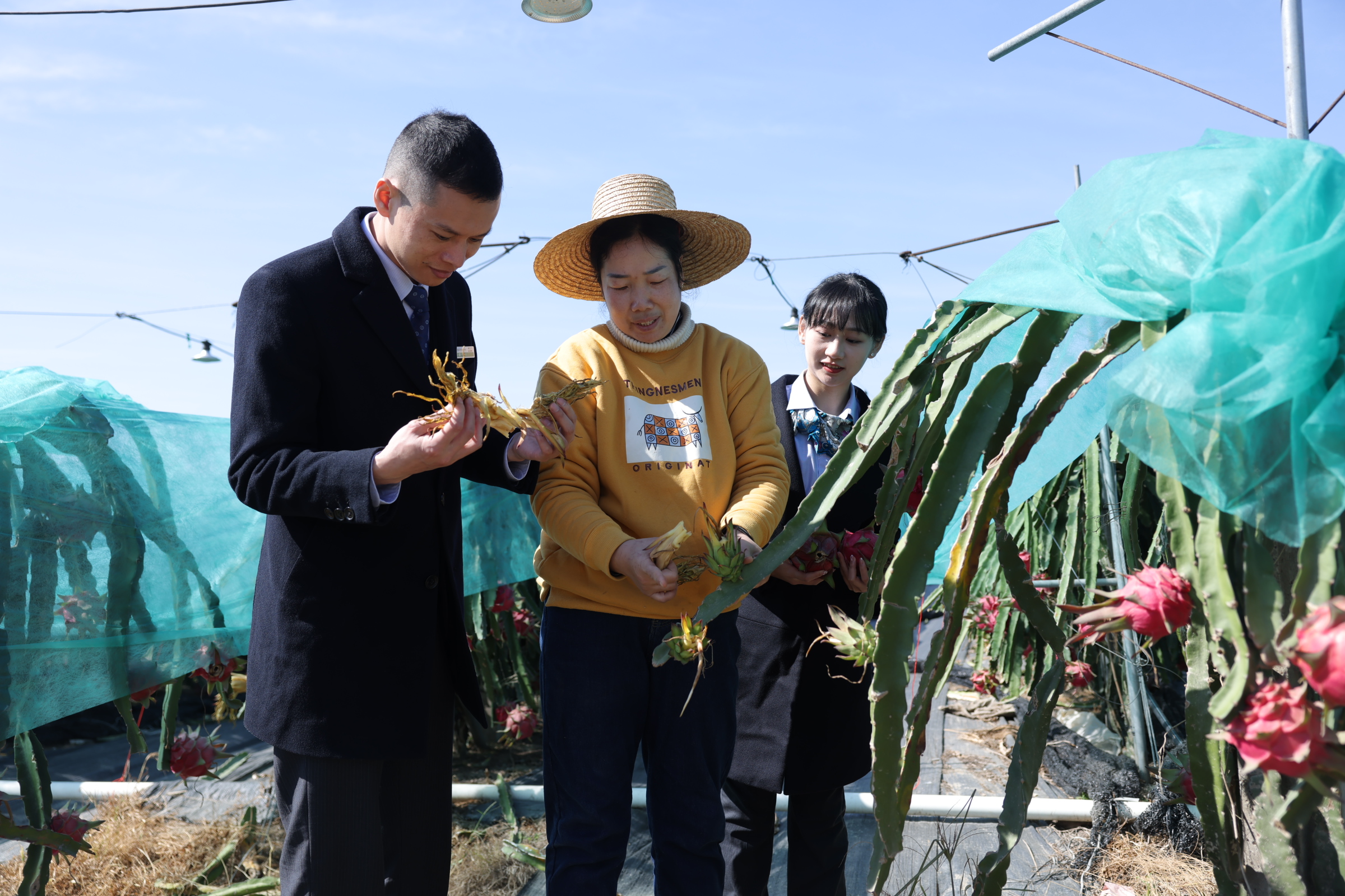 農(nóng)行惠州分行工作人員在火龍果種植基地開(kāi)展農(nóng)貸授信調(diào)查。 惠州農(nóng)行供圖