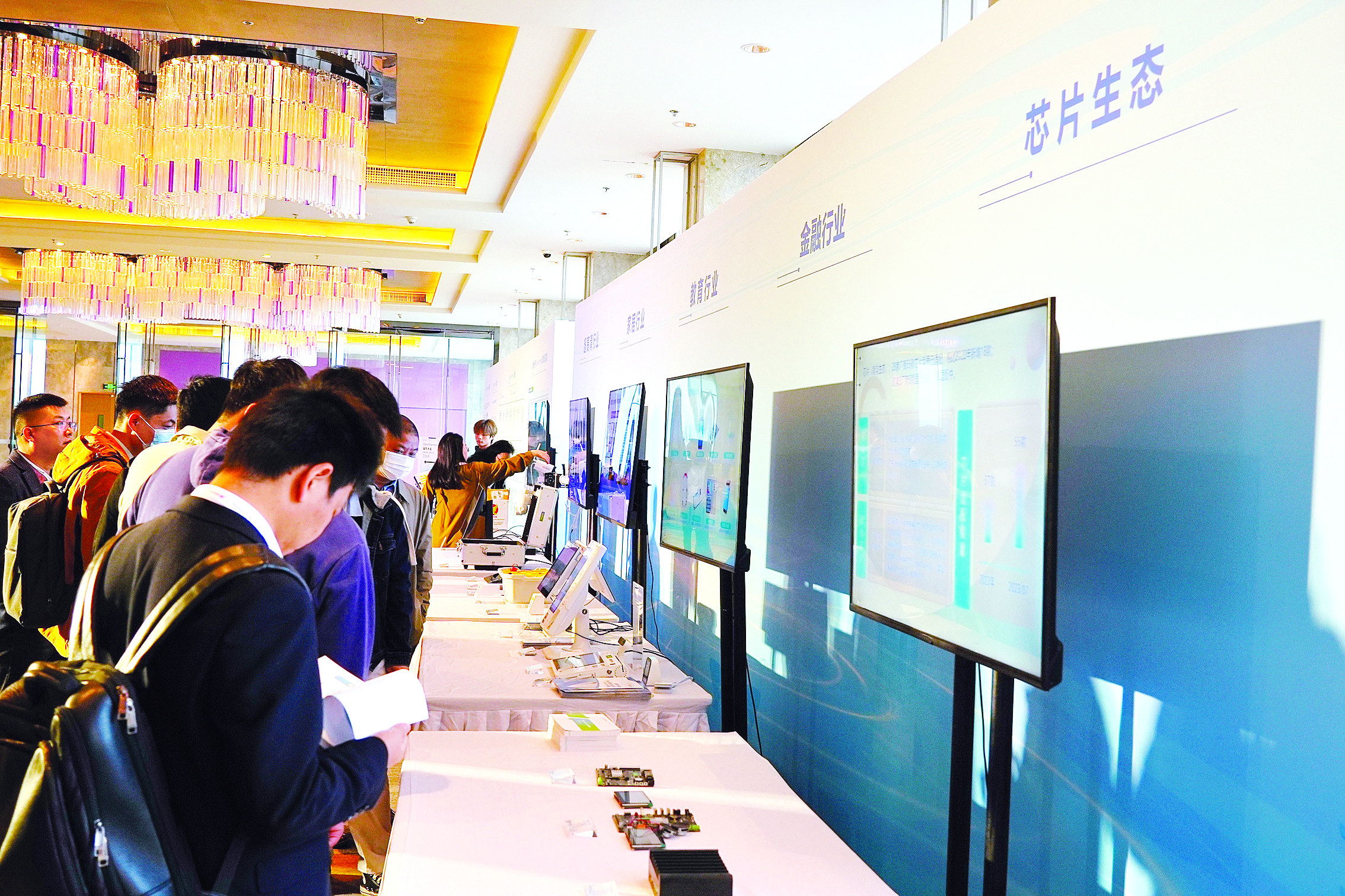 產(chǎn)品展示區(qū)吸引眾多人員駐足。惠州日報記者朱金贊 攝