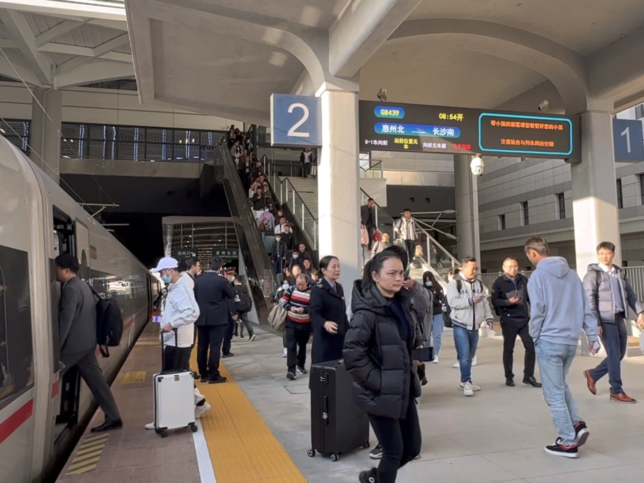 問道南岳衡山,尋跡岳陽樓,打卡五一廣場,品嘗湘味美食……說起到湖南旅游,你心動了嗎?1月10日、11日,高鐵惠州北站首次開行2趟前往長沙南、岳陽東的始發(fā)終到列車。從惠州北站出發(fā)后,通過廣汕聯(lián)絡(luò)線到廣州東站,經(jīng)新投入運營的廣州白云站轉(zhuǎn)京廣高鐵,中途經(jīng)停廣州、韶關(guān)、郴州、衡陽等城市。今后,惠州市民在惠州北站乘坐高鐵可直達(dá)湖南地區(qū),無需再經(jīng)深圳北站轉(zhuǎn)車。