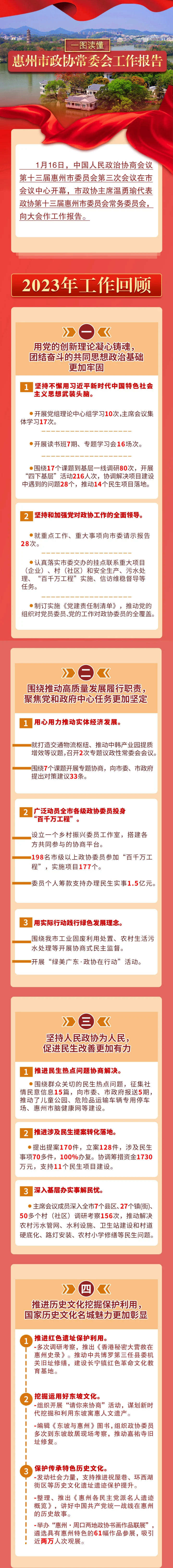 1月16日上午,中國人民政治協(xié)商會議第十三屆惠州市委員會第三次會議在市會議中心開幕。市政協(xié)主席溫勇瑜代表政協(xié)第十三屆惠州市委員會常務(wù)委員會向大會作工作報告。本次報告都有哪些亮點?現(xiàn)在帶你一圖讀懂!