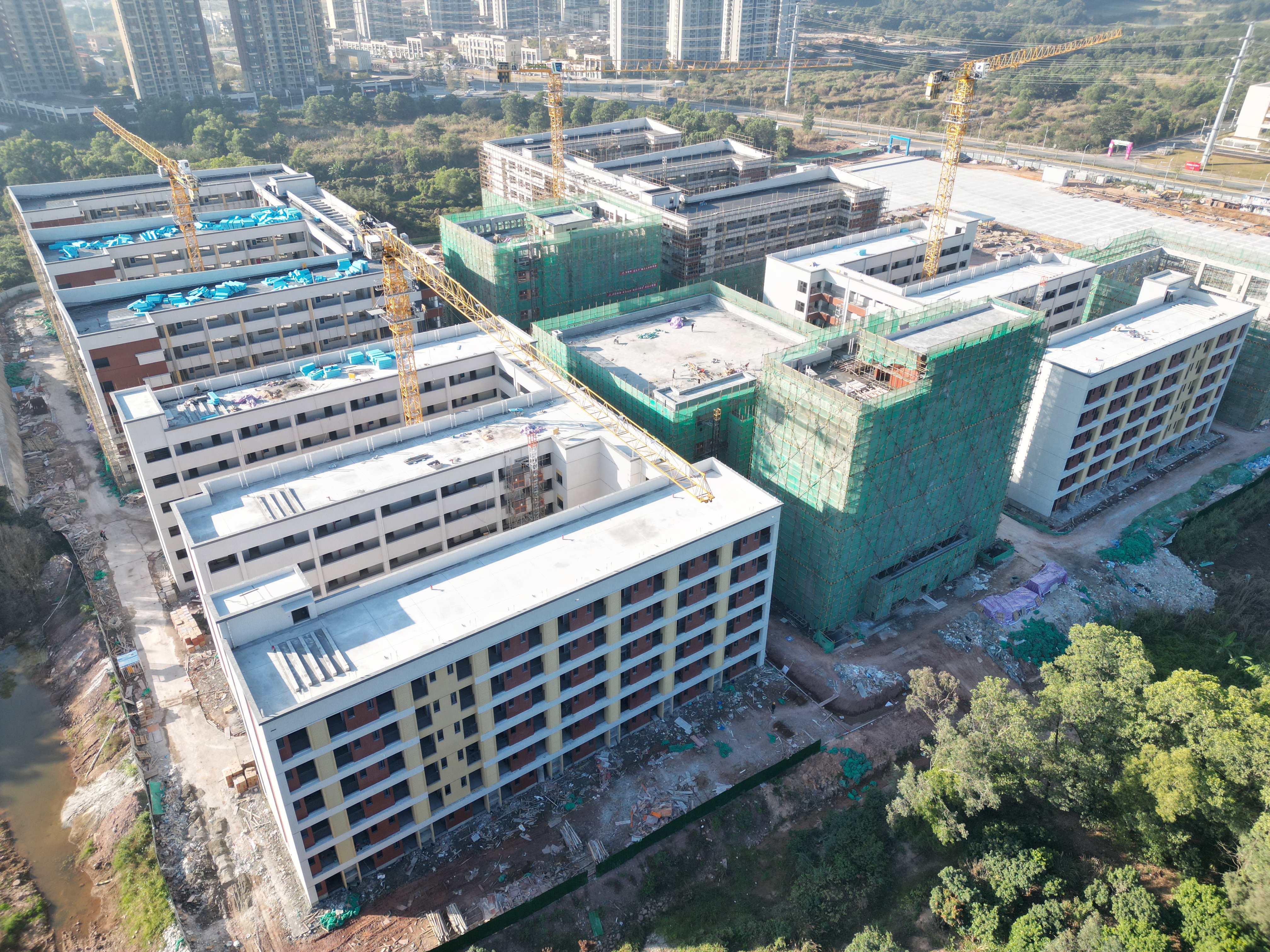 截至2023年12月底,市第八中學(xué)高中部所有樓棟均已封頂,目前正在開展砌體、裝飾裝修、水電安裝等施工,其中教學(xué)綜合樓、教師宿舍外墻貼磚全部完成,教學(xué)樓,1號、2號學(xué)生宿舍外腳手架完成拆除。預(yù)計2024年6月交付使用。市第八中學(xué)高中部建設(shè)完成后,原校區(qū)高中三個年級的學(xué)生全部搬到高中部校區(qū),并實施全員住宿,全封閉管理。