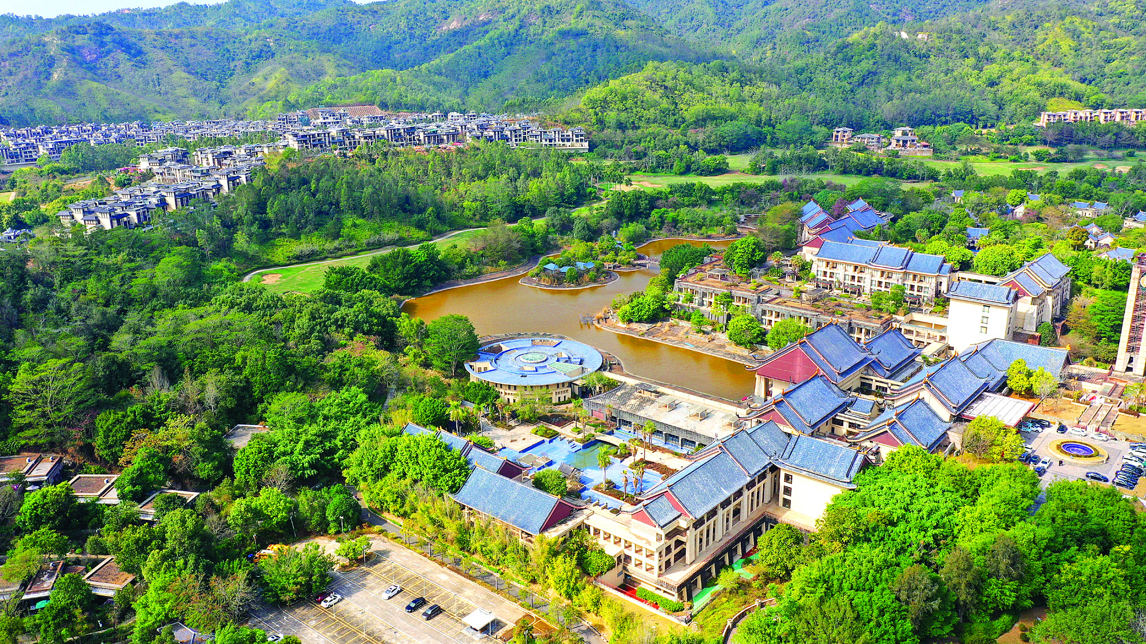 富力惠林溫泉所在的黃沙洞村,四面環(huán)山,綠道蜿蜒,植被茂盛,不僅自然風(fēng)光優(yōu)美,還是惠城區(qū)有名的“溫泉村”。這里地?zé)豳Y源豐富,溫泉分布面積約500畝。正是看中這里的特色資源,富力集團(tuán)在此投資打造了惠林溫泉度假區(qū)。度假區(qū)配套惠州洲際度假酒店、富力惠林莊園、山地運(yùn)動(dòng)公園、兒童主題公園、櫻花谷等,集山林、溪谷、溫泉于一體,游客來(lái)到這里不僅可以泡溫泉緩解疲憊,還可以欣賞滿山層林的大自然風(fēng)光。