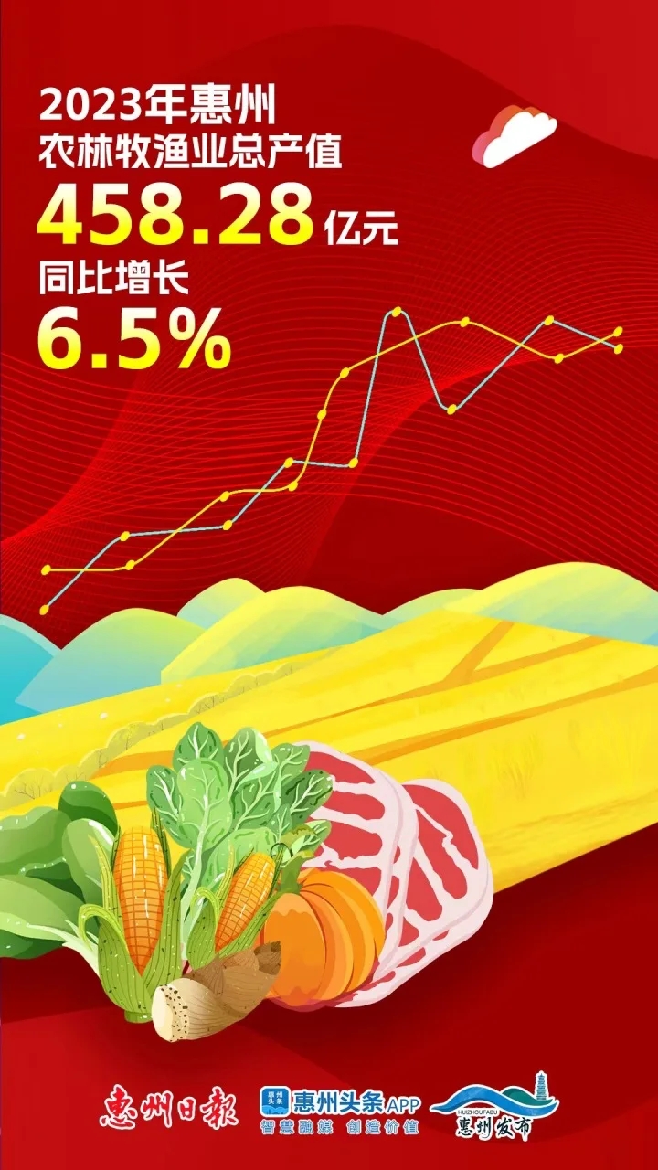 看縱深。農業(yè)是強國之基。去年,惠州農林牧漁業(yè)總產值458.28億元,同比增長6.5%。