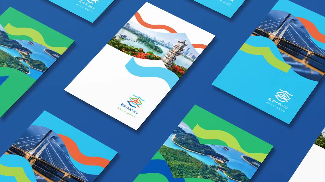標(biāo)志由惠州地標(biāo)“泗洲塔”與象征美好匯聚、繁榮發(fā)展的環(huán)繞飄帶創(chuàng)意變化成“惠”字,強(qiáng)調(diào)城市品牌名稱。整體突出城市的歷史底蘊(yùn)與現(xiàn)代發(fā)展,構(gòu)成多元美好匯聚的視覺意象。其中,綠色飄帶描繪了城市的綠色自然與宜居生態(tài),紅色飄帶代表活力綻放的市花勒杜鵑,體現(xiàn)城市紅色文化,綠色飄帶象征城市的海洋文化與包容胸懷。視覺核心“泗洲塔”橙色的運(yùn)用,則意在彰顯城市底蘊(yùn)深厚的歷史文化內(nèi)涵。此外,標(biāo)志在字體設(shè)計(jì)上以蘇東坡“惠州”二字書法風(fēng)格為藍(lán)本,突出城市東坡文化。