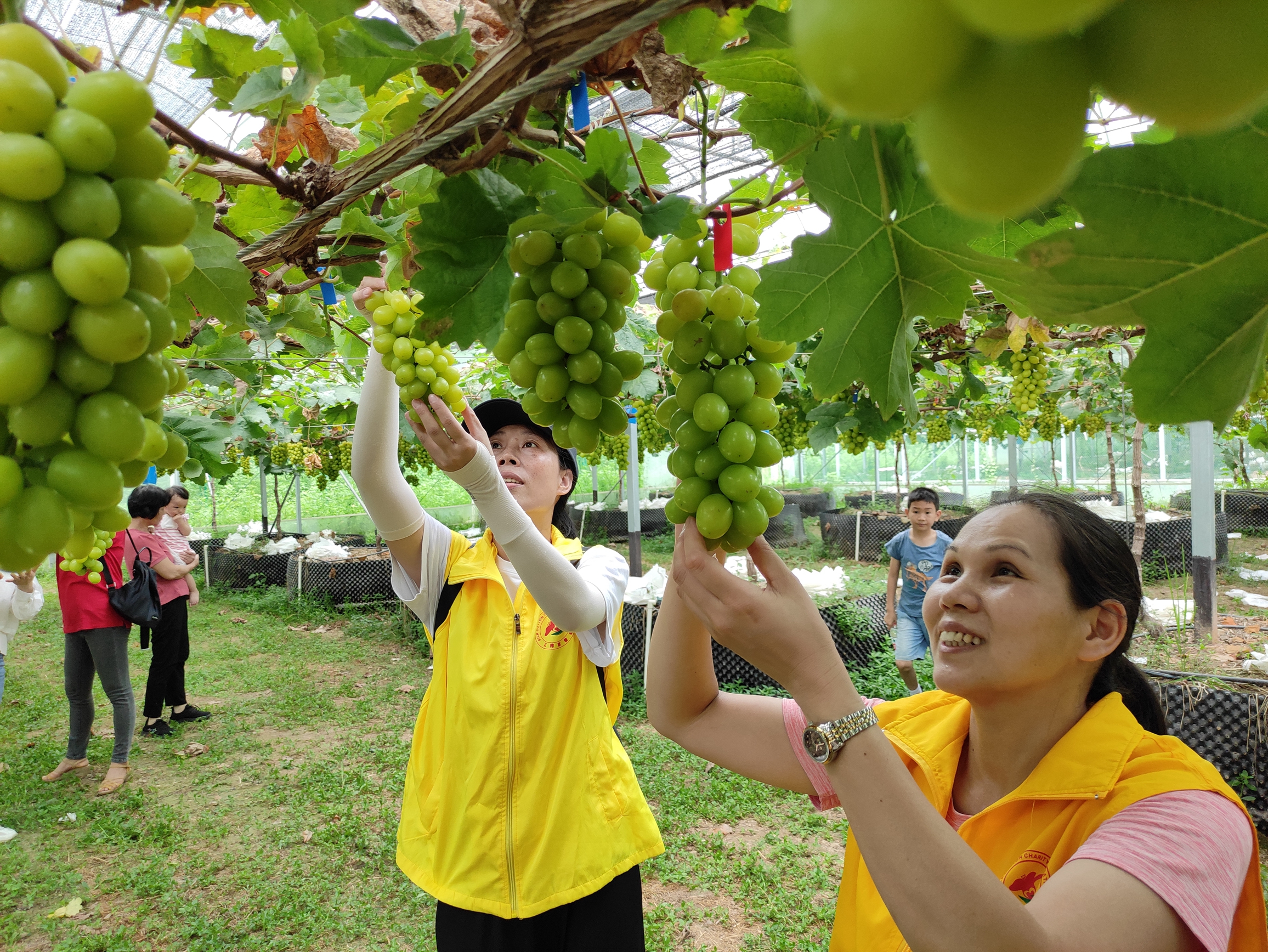 位于惠城區(qū)馬安鎮(zhèn)龍?zhí)链宓纳褶r(nóng)蘭香谷在陽光玫瑰葡萄成熟季節(jié)迎來大量游客。