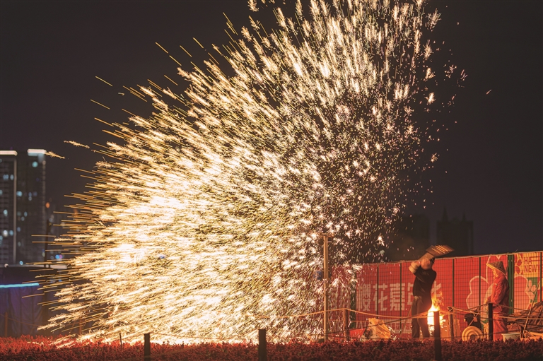 “非遺”打鐵花帶來(lái)焰火狂歡