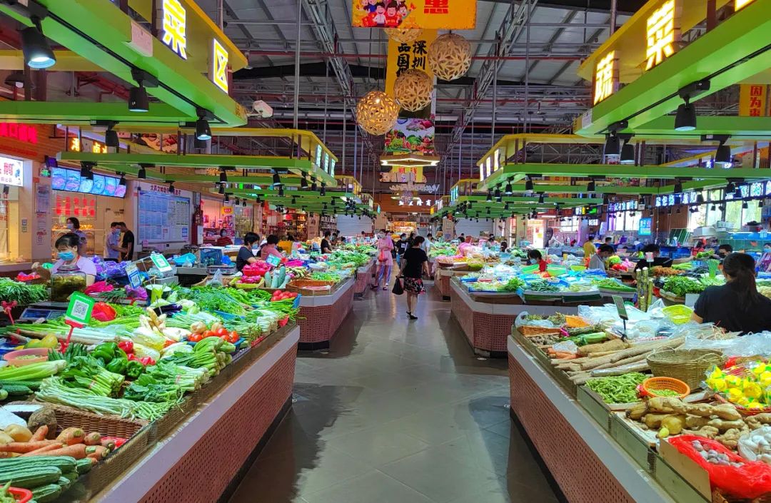 顧客在菜市場買菜。惠州日報記者朱金贊 攝