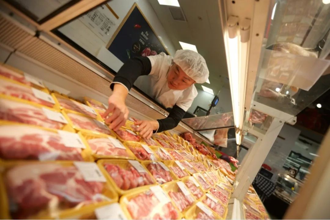 超市工作人員在擺放豬肉。惠報全媒體記者黃鑫威 攝