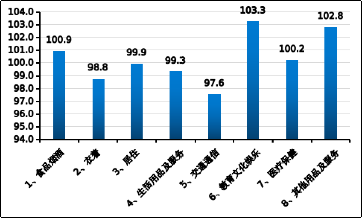 其中,食品價格上漲0.4%,服務(wù)價格上漲1.4%,非食品價格上漲0.2%,工業(yè)品價格下降1.9%,消費品價格下降0.5%。