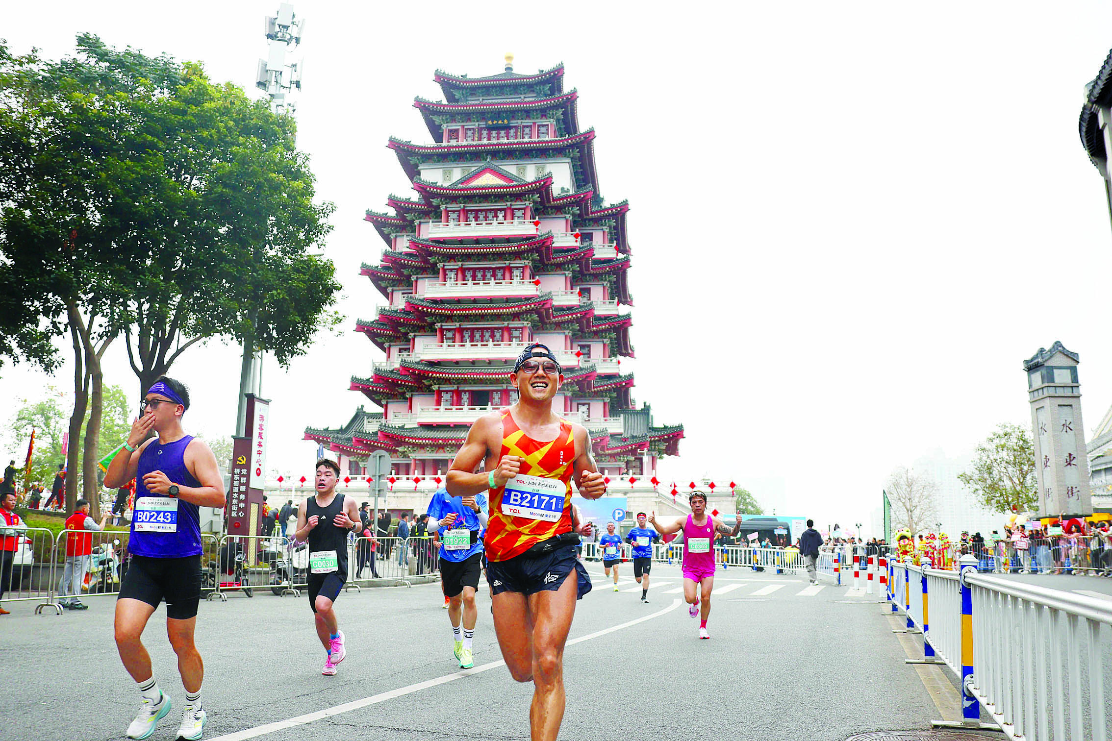 “最美橋西三月天 惠馬開跑勇爭先”“府城之下 燃燒汗水”“跑進(jìn)橋西 穿越府城”……在文筆塔,橋西街道辦工作人員穿著美麗的漢服,舉著自創(chuàng)的標(biāo)語牌,站在文筆塔下,為選手們加油鼓勁。“惠州人民真熱情!”跑友陸炳昌感嘆道。