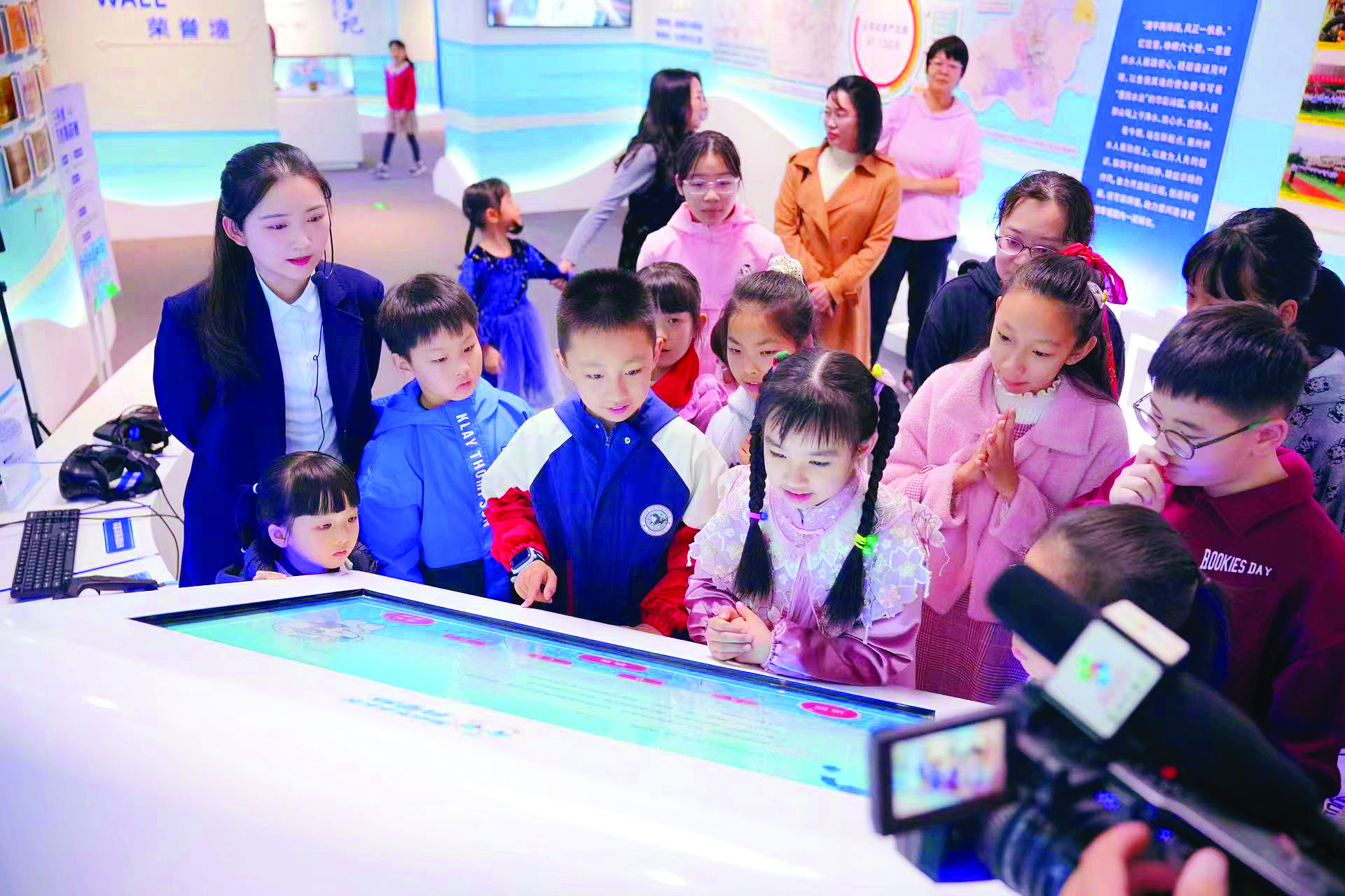 在基地內(nèi),學(xué)生和家長(zhǎng)們緊跟現(xiàn)場(chǎng)講解員,津津有味地學(xué)習(xí)一滴水的誕生過(guò)程、節(jié)水科普知識(shí)、節(jié)水技術(shù)等,積極參與互動(dòng)小游戲,還深入水廠實(shí)地感受飲用水的處理過(guò)程。