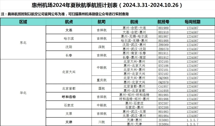3月31日起,惠州機(jī)場將正式執(zhí)行2024年度夏秋航季航班計(jì)劃,執(zhí)行時間為2024年3月31日-10月26日。