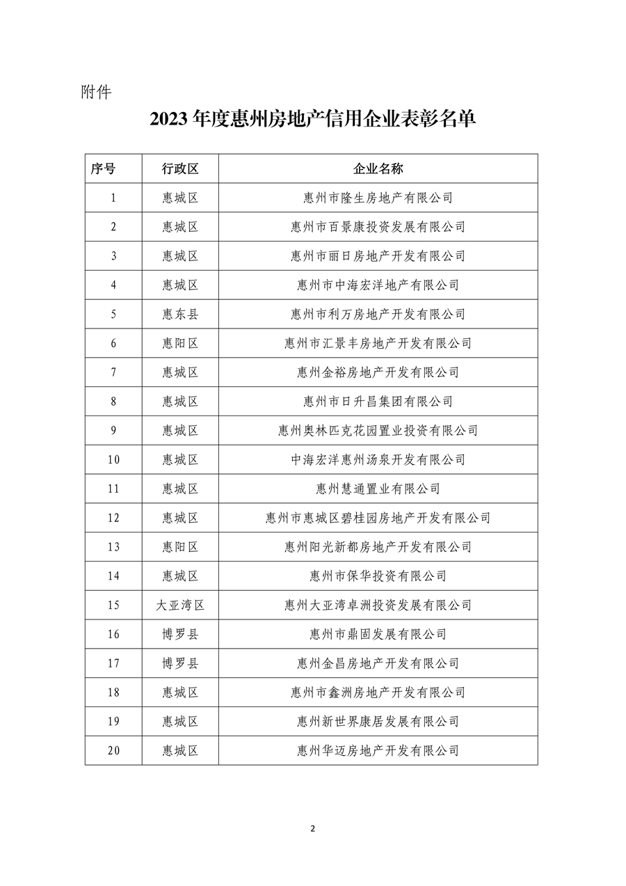 惠州市房地產(chǎn)業(yè)協(xié)會依據(jù)《惠州市房地產(chǎn)開發(fā)企業(yè)信用管理辦法》(修訂版),本著“公開、公平、公正”的原則,根據(jù)“惠州市房地產(chǎn)開發(fā)企業(yè)信用管理平臺”信用分值排名,并征求相關(guān)職能部門對初步入圍名單的評審指導(dǎo)意見,形成初評名單。后經(jīng)過公示環(huán)節(jié),并綜合主流媒體和公眾意見,形成最終表彰名單。惠州市20家房地產(chǎn)開發(fā)企業(yè)被授予“2023年度惠州房地產(chǎn)信用企業(yè)”稱號!其中包含惠州市隆生房地產(chǎn)有限公司、惠州奧林匹克花園置業(yè)投資有限公司等本地知名房企。