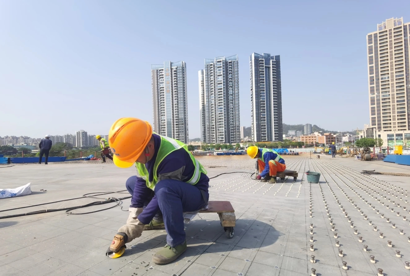 金山湖片區(qū)一號橋、二號橋的主橋已于2023年底合龍,目前正在進行的是人行景觀橋和橋面鋪裝施工。記者走進兩座大橋的施工現(xiàn)場,只見塔吊高聳,工人正忙著進行人行景觀橋鋼梁拼接等,各項建設工作忙碌而有序地開展。站在大橋上眺望,金山湖波光粼粼,兩岸是現(xiàn)代化的城市風光,令人賞心悅目。