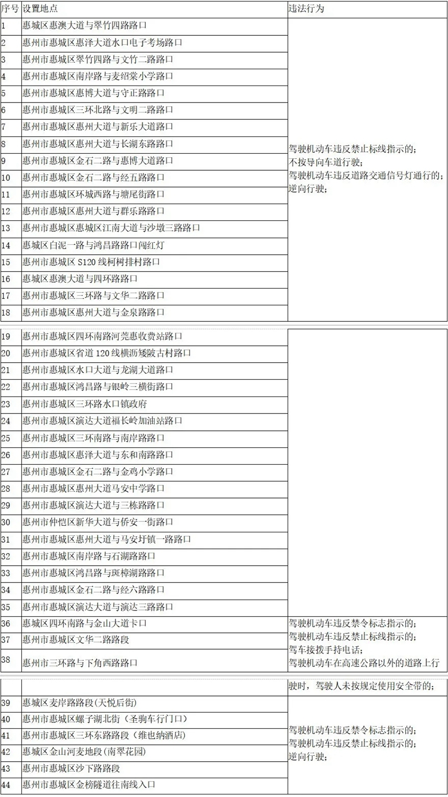 惠州多個固定式交通技術(shù)監(jiān)控設(shè)備地點(diǎn)公布