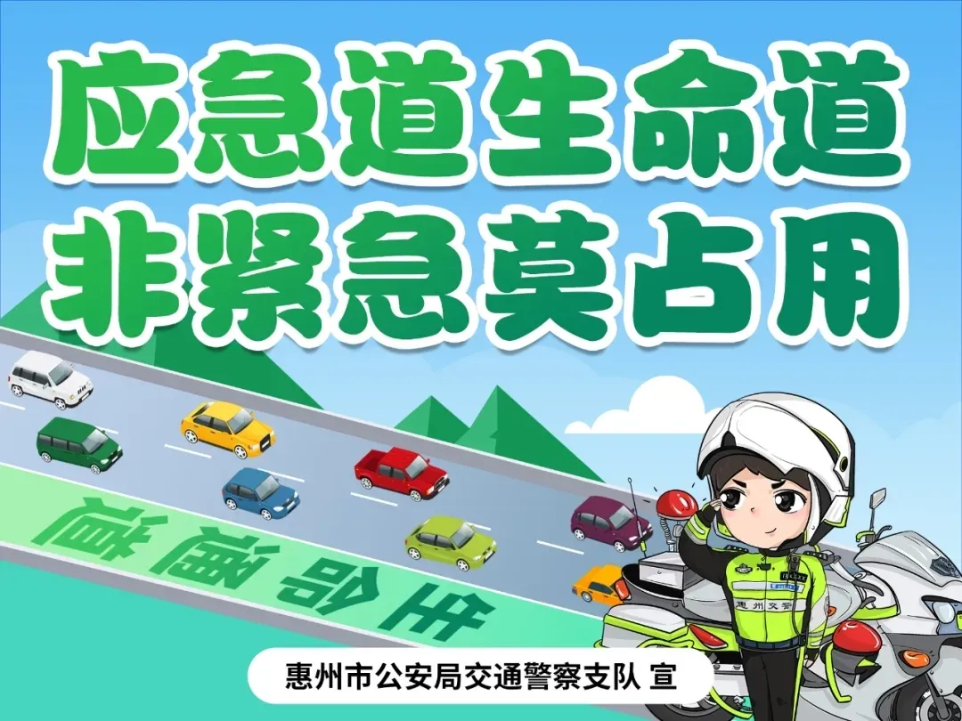 如遇道路擁堵,請耐心等待,依次排隊通行,切莫占用應(yīng)急車道,以免影響應(yīng)急救援車輛通過。惠州交警將會持續(xù)嚴查、曝光非法占用應(yīng)急車道行為。