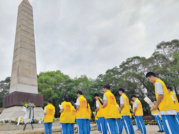 4月4日,惠城區(qū)豐山公園內(nèi)的東江人民革命烈士紀(jì)念碑前迎來祭掃高峰,許多市民或單位自發(fā)前往祭掃,緬懷革命先烈的豐功偉績。一批批市民懷著對革命英烈的崇高敬意,敬獻(xiàn)鮮花,默哀致敬。