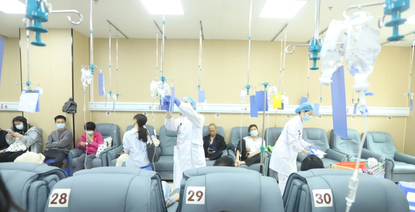 惠州市人民中心醫(yī)院醫(yī)護人員在日間治療中心服務(wù)患者。