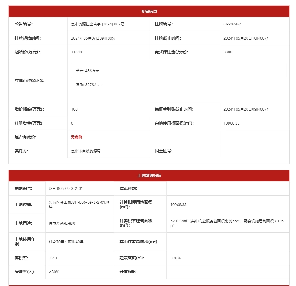 4月17日,惠州市公共資源交易中心發(fā)布惠城區(qū)金山湖JSH-B06-09-3-2-01國有建設用地使用權網(wǎng)上掛牌出讓公告。作為2024年惠州市本級首宗掛牌住宅地塊,也是中心城區(qū)較為難得的價值地塊,它的掛牌引發(fā)了多方關注。