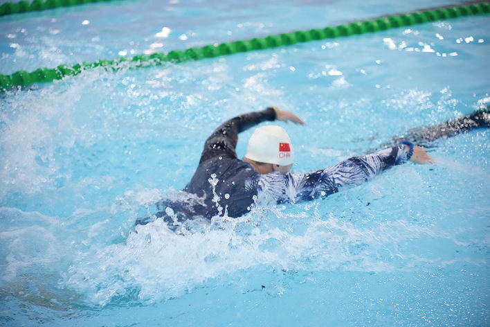 殘疾人也能在水里享受游泳的樂趣。比如視力障礙的游泳者,通過對水線的觸覺,把握游泳方向完成暢游,可以鍛煉敏銳的觸覺和聽力,彌補(bǔ)視力的不足。而聽障人士,主要通過指導(dǎo)員的手勢進(jìn)行學(xué)習(xí)交流,于無聲處體驗(yàn)水上“飛魚”的樂趣。為安全起見,建議指導(dǎo)員同殘疾人一道下水。