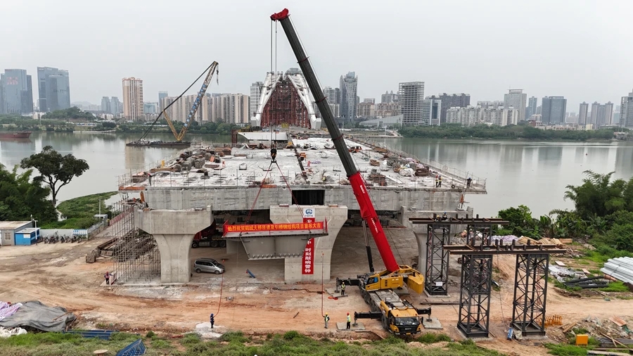 4月18日上午,由中鐵廣州局承建的鵝城大橋引橋匝道橋鋼梁開始架設(shè),標志著引橋匝道橋正式進入鋼梁施工階段。