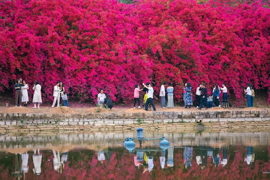 仲愷潼湖鎮(zhèn)黃屋村,三角梅迎風(fēng)盛開,灼灼其華、明艷嬌嫩。一個又一個短視頻、照片打上“絕美”“火爆”“獨屬廣東的浪漫”等關(guān)鍵詞,帶著萬千網(wǎng)友一頭撞進春天的懷抱。