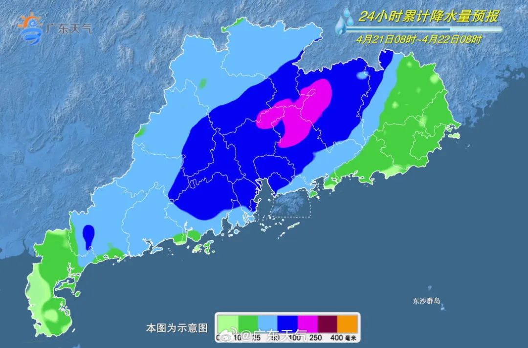 4月17日08時-4月21日08時,惠州市平均降雨量131.9毫米,最大降雨量出現(xiàn)在龍門地派429.3毫米;預計21-22日全市仍有暴雨到大暴雨局部特大暴雨,并伴有6~8級雷暴大風和短時強降水等強對流天氣。根據《惠州市防汛防旱防風防凍應急預案》,經會商研判,市三防指揮部決定于4月21日10時將防汛IV級應急響應提升為防汛Ⅲ級應急響應。