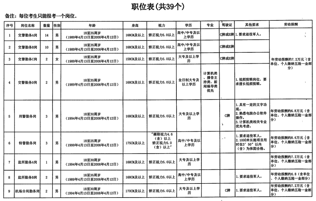惠州市公安局招聘警務輔助人員39名