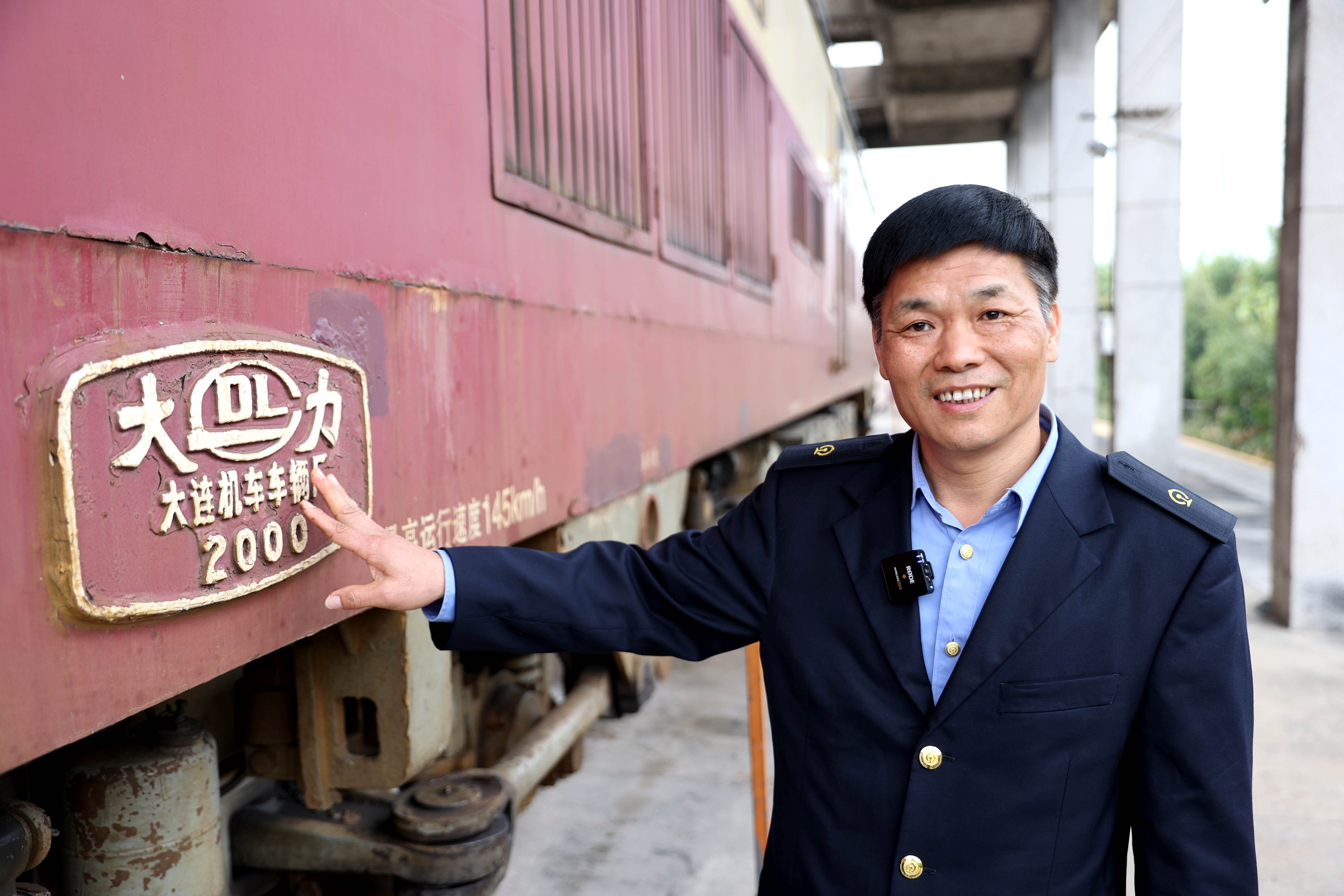 羅裕中向記者介紹一臺(tái)和自己“同事”二十多年的機(jī)車,感慨萬千。