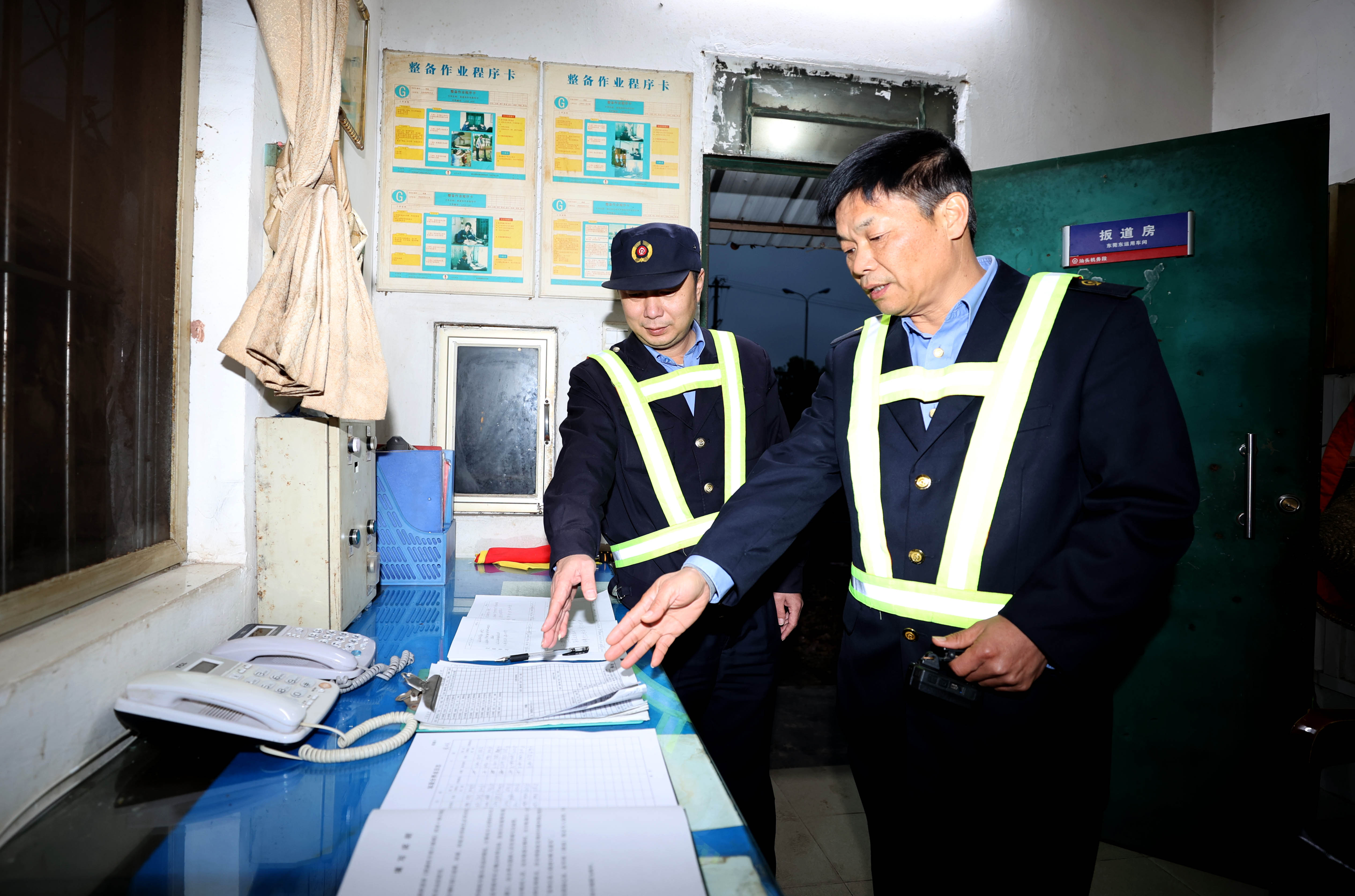 打著手電筒,逐一檢查停在整備場的機(jī)車防溜情況。