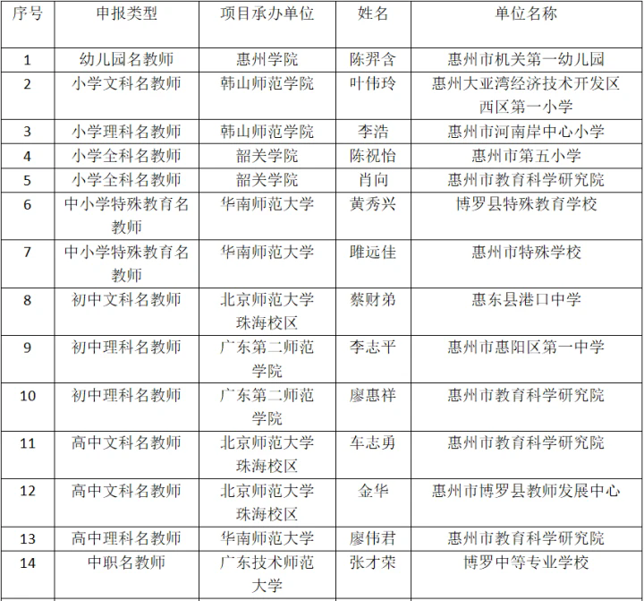省級培養(yǎng)項目(2024-2026年)培養(yǎng)學(xué)員名單(惠州部分)