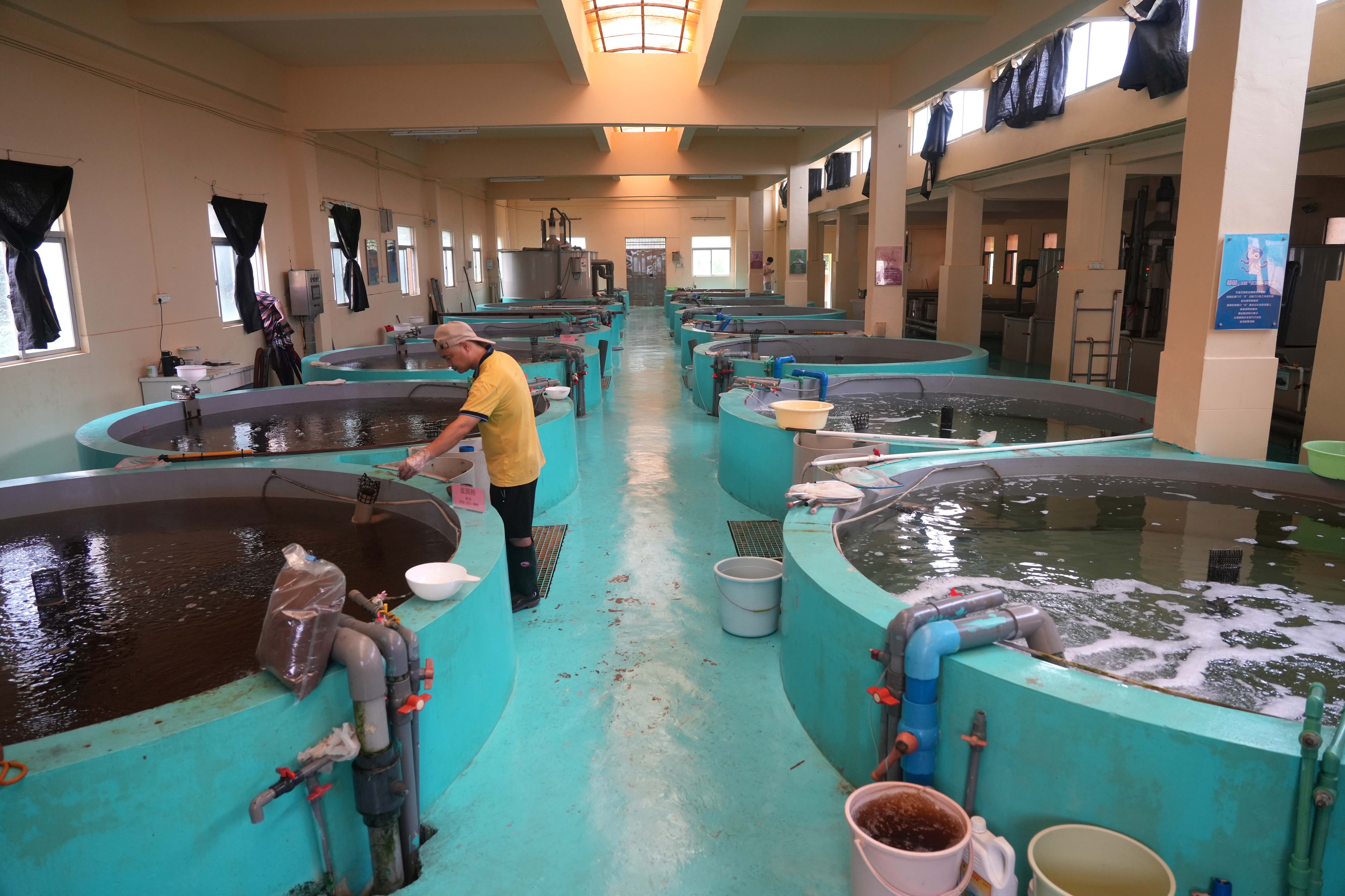 位于大亞灣的廣東省農(nóng)業(yè)技術(shù)推廣中心海洋漁業(yè)中心試驗(yàn)基地藍(lán)圓鲹良種繁育車間。
