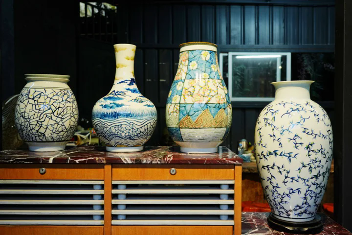 每當(dāng)出現(xiàn)瓶頸期,他就會(huì)走出山里,到外地的陶瓷產(chǎn)業(yè)區(qū)參觀學(xué)習(xí),在不同朝代沉淀下來的陶瓷文化中思考探索。每有思考所得,他就會(huì)再創(chuàng)作加以實(shí)踐。