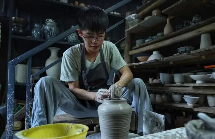 分享完獲獎(jiǎng)的喜悅,許嗣達(dá)又開始拉坯。 拉坯好壞程度直接決定后續(xù)上釉燒成的結(jié)果,許嗣達(dá)心平氣和、眼準(zhǔn)手穩(wěn)地,拉出心目中的器物性狀。他說,“外界的肯定,使得他對(duì)出品更為負(fù)責(zé),未來的藝術(shù)道路,要用作品說話。”