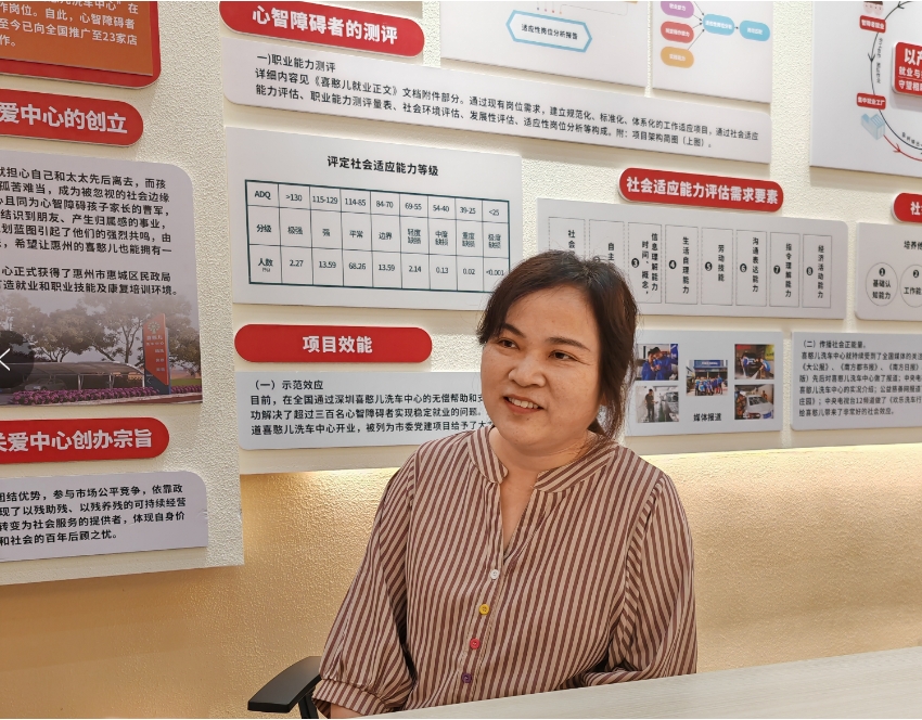 汪婷把采訪的地點選擇在兒子工作的惠城區(qū)喜憨兒洗車中心,對于這個抱養(yǎng)的孩子,汪婷有著特殊的感情。他們一起經(jīng)歷了很多,慶幸的是,一切都在慢慢變好。