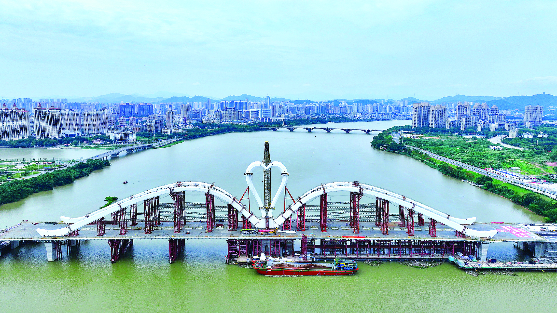 據(jù)介紹,鵝城大橋全長1119.5米,采用鋼梁鋼拱結(jié)構(gòu),按雙向6車道設(shè)計。大橋以東江之“水”、惠州之“鵝”為主要元素進行設(shè)計,將于今年建成通車。鵝城大橋建成后,將成為惠州市區(qū)第七座跨東江大橋,有效緩解東江大橋交通壓力,成為聯(lián)動?xùn)|江兩岸惠民興業(yè)的新動脈。