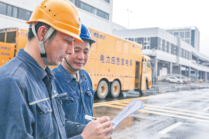 惠州博羅供電局工作人員在粵港澳大灣區(qū)(廣東·惠州)綠色農(nóng)產(chǎn)品生產(chǎn)供應(yīng)基地開展保供電演練。